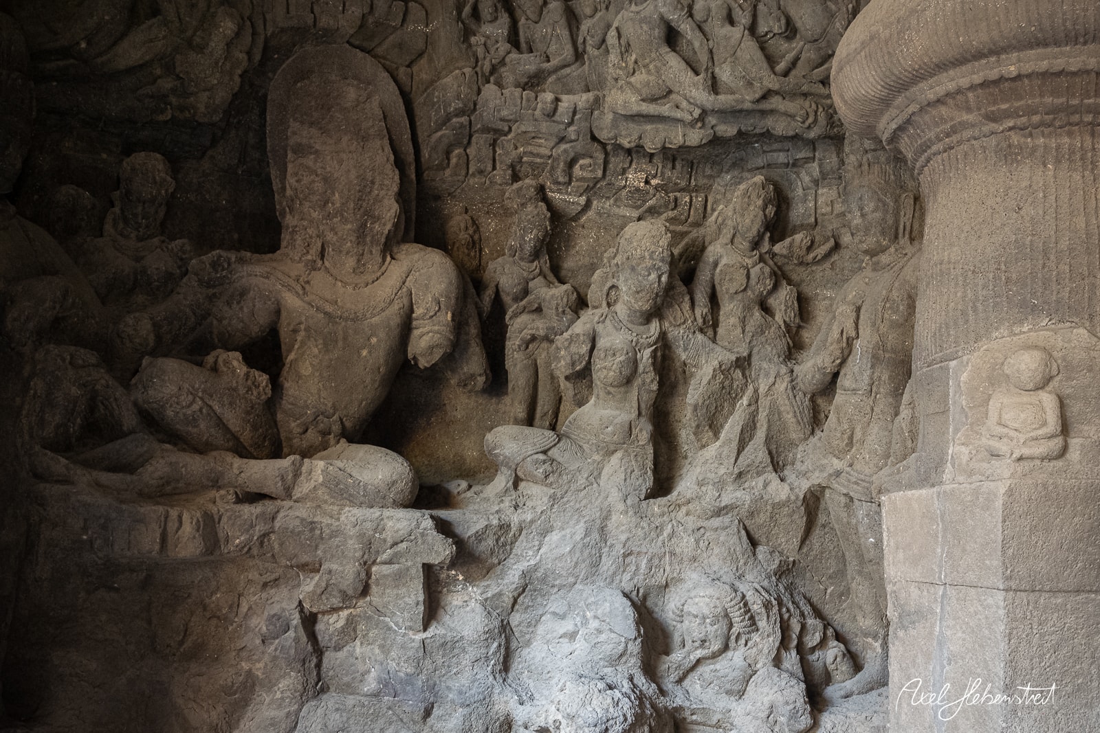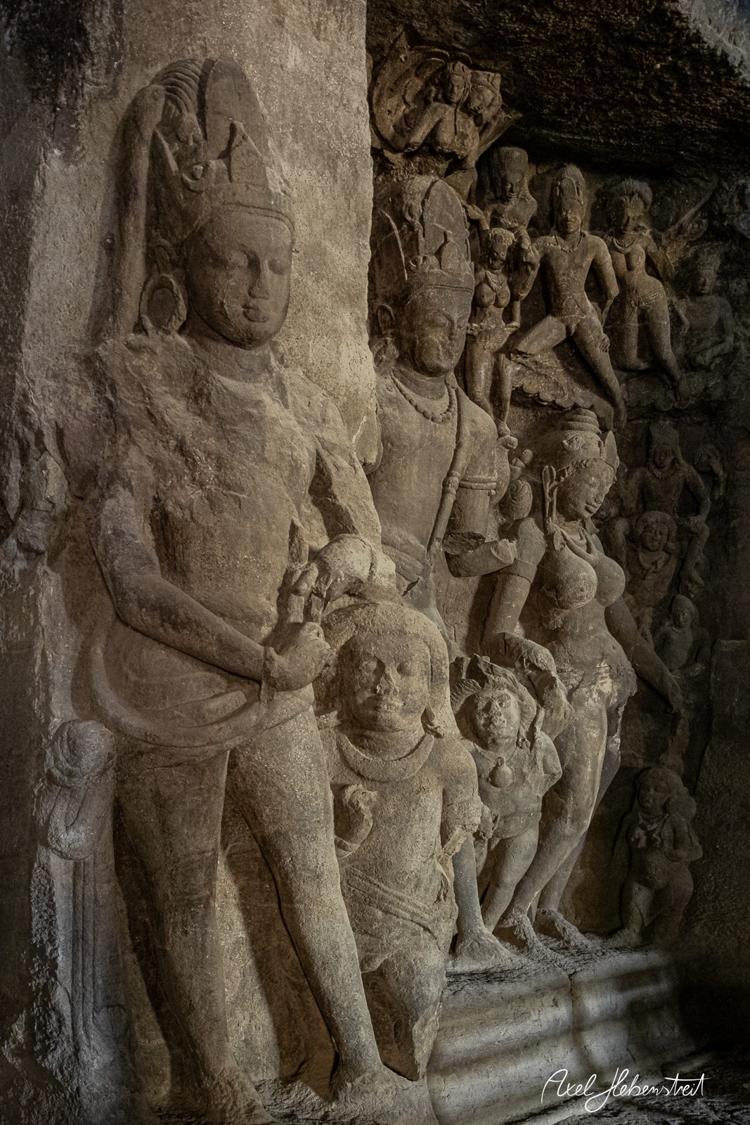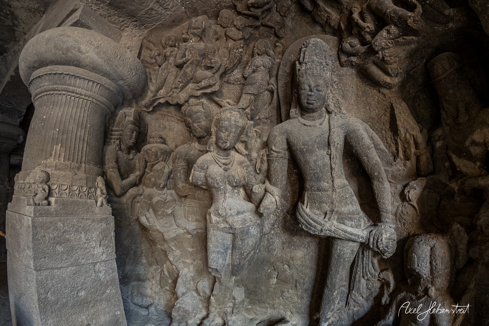 Tracing Beauty in Beauty, and Wonder: Elephanta Caves, a UNESCO World Heritage Site on an island named the city of the caves (Gharapuri), near Mumbai in Maharashtra, form a collection of cave temples predominantly dedicated to the Hindu god Shiva, was a daytrip appreciating an extraordinary display of precision: rock cut statues, created in craftsmenship & devotion, hewn in solid basalt rock. Dated back as far as 2nd century BCE - these extraordinary statues depict stories and scenes like Shiva bringing Ganges River to Earth, The Wedding of Shiva, Shiva slaying the demon of darkness, Shiva as the cosmic lord of dancers, portraying the many aspects qualities of Shiva: creation, protection, and destruction.